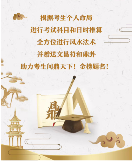 在这个重要的时刻,钱师推出中高考旺运套餐,除命理分析外,还赠送鼎卦和文昌符,助力学子金榜题名!
