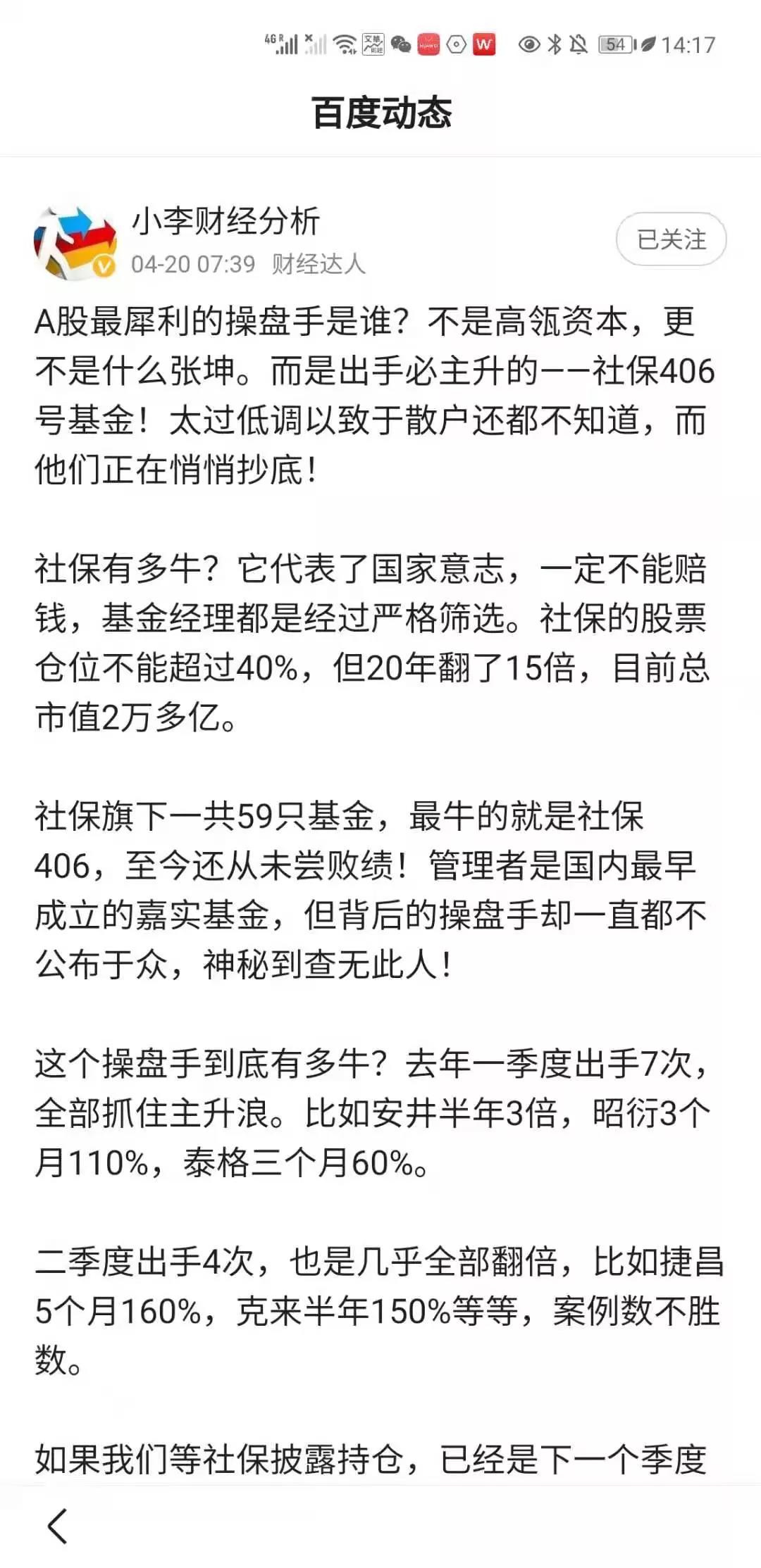 我说这个名字怎么这么熟悉,这不是我们不二堂服务的客户嘛,每年我们定点定时要我们不二堂未来发布会内容的,要全年的股市分析宏观的,他不要我们个股的。研究个股对于这种大基金来讲没有多大太大的价值,大概好像是从1000亿现在干到了2万亿。后来我们才知道原来我们也服务过这么牛的基因。而且这个基金比大家市面上看到的基金要牛很多。当然了,从规律上面来讲,我们深圳华南的周总讲了一句钱老师这个基金用来给国家救市用的基金,他进去的时候永远都是在底部。我说那有道理,在底部进去肯定能挣钱,这个关键是你知道什么时候是底,这个也是了不起的。从某种意义上面来讲,对于我们的启发、启示也是很大。我既然有这么价值的东西,需要我免费给大家,开放在这里,但是很多人还不当回事。那么我们索性就关起门来,把有效信息传递给有效人,给有效人创造更大的价值。信息放到了外围平台变成一个广泛性的信息的时候,这个信息可能会影响波动性的,未来一定是我们的重点,我们不是不开放,我们的开放是开放给我们内部而已。内部要开放,外部为什么不开放?我们怕如果是我们给的信息是不对的,反而导致社会的不稳定,是我们内部的东西。